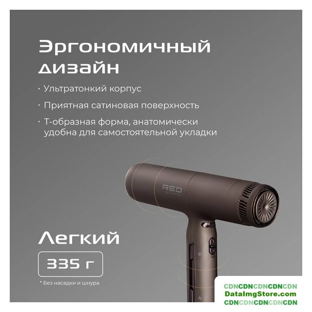 1400 Вт, DC мотор, ионизация, независимая регулировка температуры, шнур 1.88 м, серый