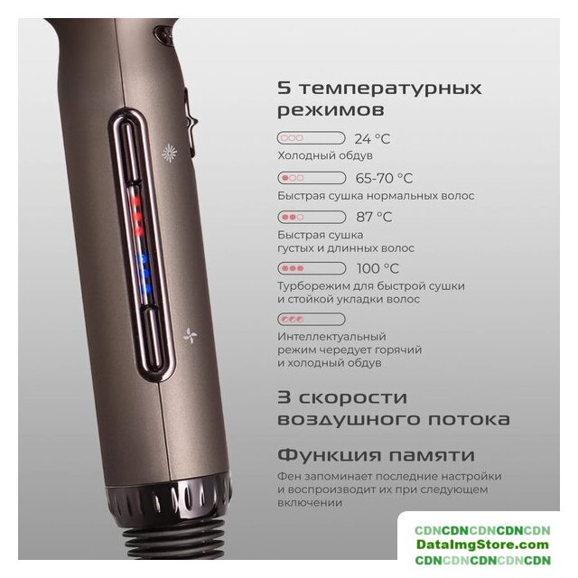 1500 Вт, EC (BLDC) мотор, ионизация, независимая регулировка температуры, шнур 1.8 м, белый/серый