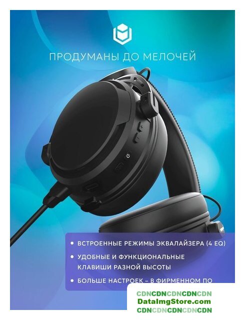 беспроводные наушники с микрофоном, мониторные (охватывающие), геймерские, съёмный аудиокабель, Bluetooth, 20-20000 Гц, время работы 18 ч, кабель 1.5 м, артикул: RSQ-30019