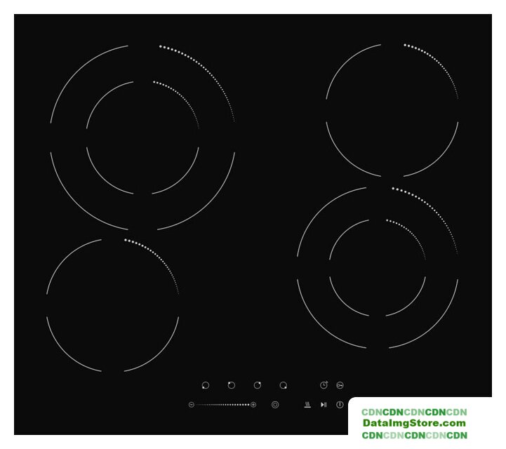 HiLight на 4 конфорки, cтеклокерамика, мощность: 6400 Вт, независимая установка, размеры (ШхГ): 59x52 см