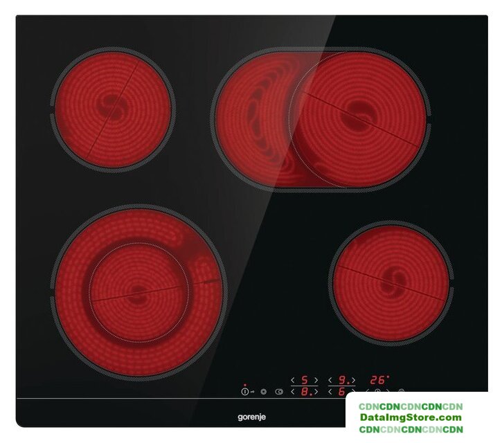 Подробная информация о конфорках | Передняя левая: 12/21 см, 0.8/2.2 кВт,Передняя правая: 14.5 см, 1.2 кВт,Задняя левая: 14.5 см, 1.2 кВт,Задняя правая: овальная конфорка 17×26.5 см, 1.5/2.4 кВт |
