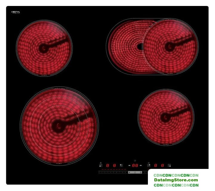 | Подробная информация о конфорках | Левая дальняя конфорка (мм/кВт): 165/1.2Левая ближняя конфорка (мм/кВт): 230/2300-1530W-770WПравая дальняя конфорка (мм/кВт): 270*165mm, 2000W/1100WПравая ближняя конфорка (мм/кВт): 165/1.2 |