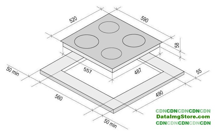 индукционная на 4 конфорки, cтеклокерамика, мощность: 7000 Вт, независимая установка, размеры (ШхГ): 59x52 см