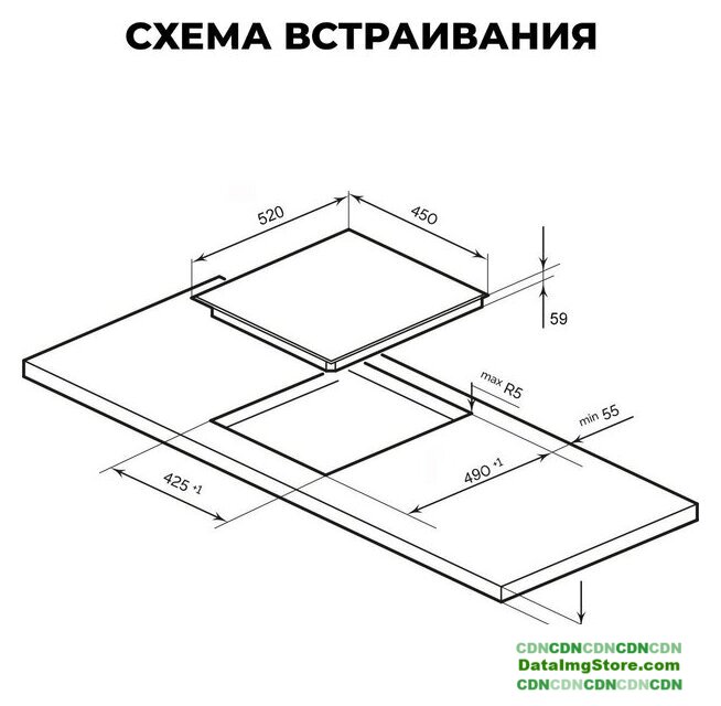 индукционная на 4 конфорки, cтеклокерамика, мощность: 7200 Вт, независимая установка, размеры (ШхГ): 59x52 см