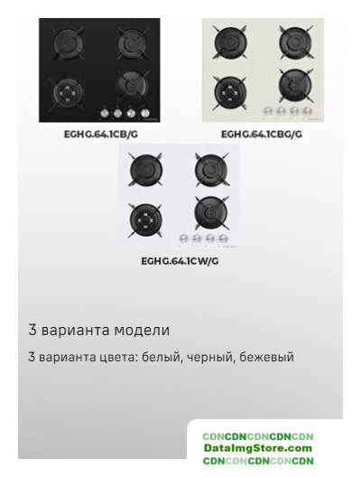 | Подробная информация о конфорках | 4 конфорки мощностью: 2600, 1700, 1700, 1000 Вт |