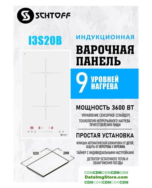 индукционная на 2 конфорки, cтеклокерамика, мощность: 3600 Вт, независимая установка, размеры (ШхГ): 29x52 см