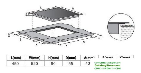 индукционная на 4 конфорки, cтеклокерамика, мощность: 8000 Вт, независимая установка, размеры (ШхГ): 59x52 см