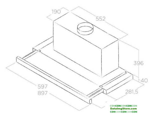 конструкция скрытая, монтаж для встраивания, ширина 51.4 см, управление электронное/кнопочное, производительность вытяжки 550 м³/ч, производительность мотора 1050 м³/ч, цвет белый