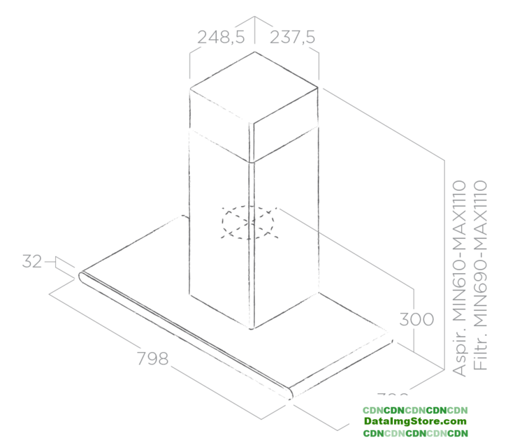 конструкция скрытая, монтаж для встраивания, ширина 52.3 см, управление электронное/кнопочное, производительность вытяжки 600 м³/ч, производительность мотора 1300 м³/ч, цвет белый/нержавеющая сталь
