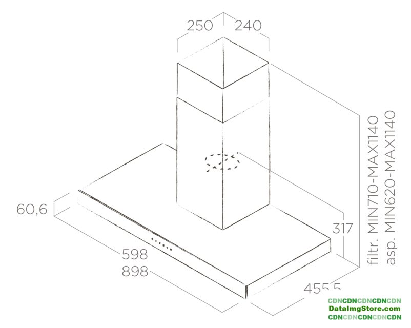 конструкция наклонная, монтаж настенный, ширина 89.6 см, управление сенсорное, производительность мотора 1000 м³/ч, цвет белый