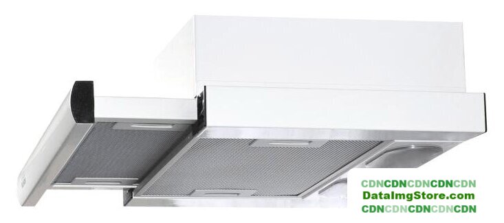 конструкция телескопическая, монтаж для встраивания, управление механическое/кнопочное, производительность мотора 400 м³/ч, ширина 60 см