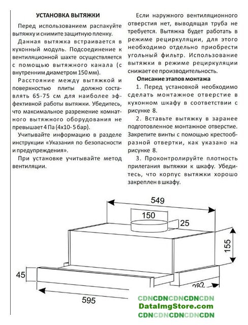 | Диаметр воздуховода | 150 мм |