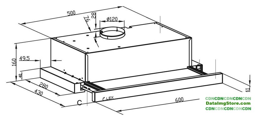 конструкция телескопическая, монтаж для встраивания, ширина 50 см, управление слайдерное, производительность вытяжки 550 м³/ч, цвет нержавеющая сталь