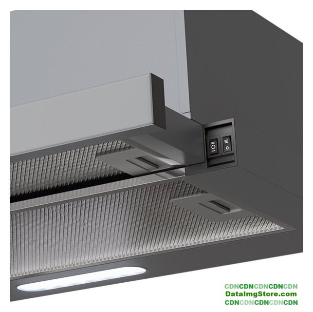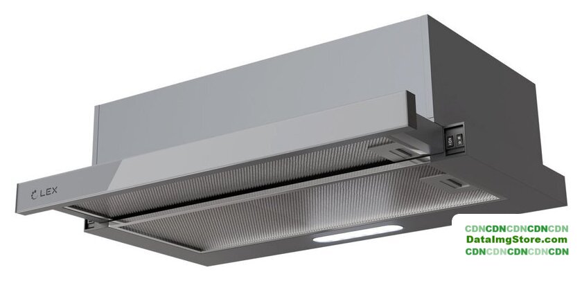 конструкция скрытая, монтаж для встраивания, ширина 73.5 см, управление слайдерное, производительность мотора 550 м³/ч, цвет серый