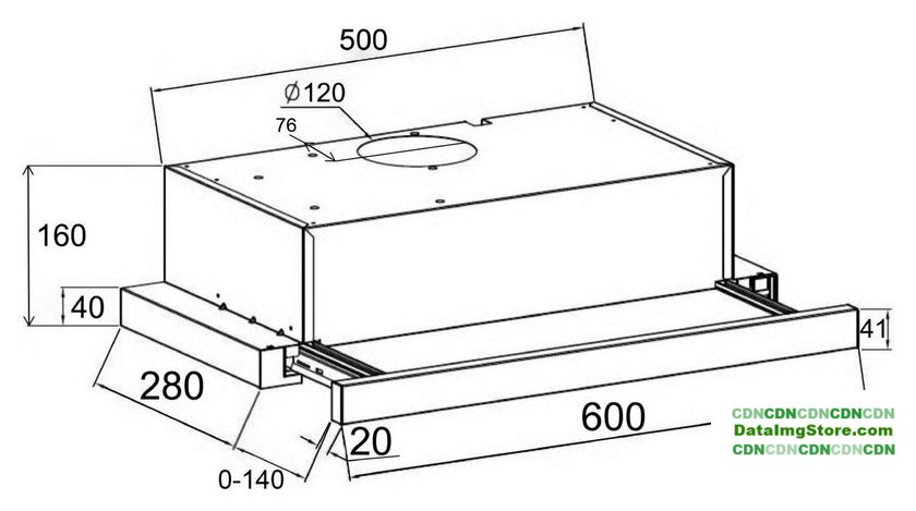конструкция скрытая, монтаж для встраивания, ширина 59.8 см, управление механическое/кнопочное, производительность мотора 750 м³/ч, цвет черный