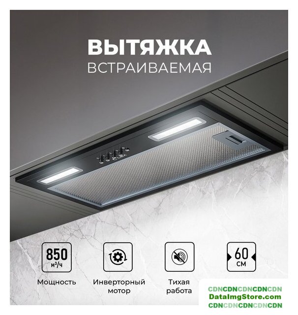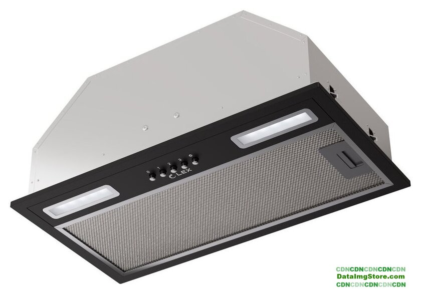конструкция телескопическая, монтаж для встраивания, управление механическое/кнопочное, производительность мотора 650 м³/ч, ширина 59.8 см