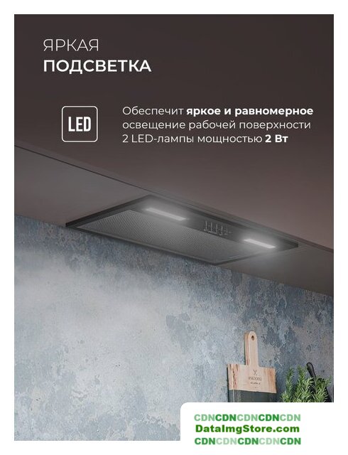 конструкция наклонная, монтаж настенный, ширина 59.7 см, управление сенсорное, производительность мотора 1020 м³/ч, цвет черный
