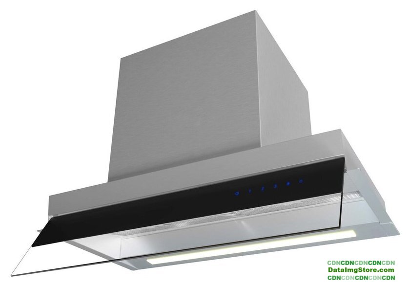 конструкция Т-образная, монтаж настенный, ширина 70 см, управление сенсорное, производительность мотора 1020 м³/ч, цвет черный