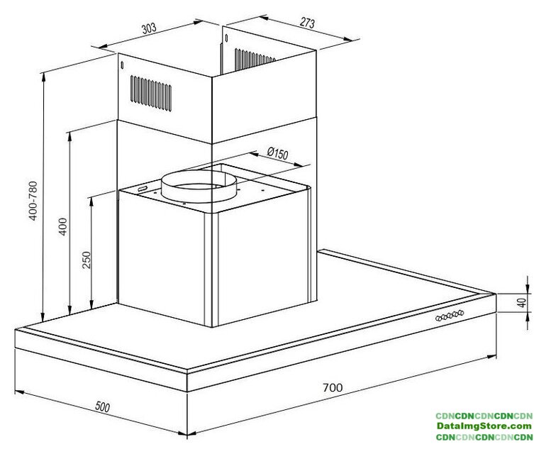 конструкция Т-образная, монтаж настенный, ширина 89.8 см, управление механическое/кнопочное, производительность вытяжки 368 м³/ч, производительность мотора 700 м³/ч, цвет нержавеющая сталь