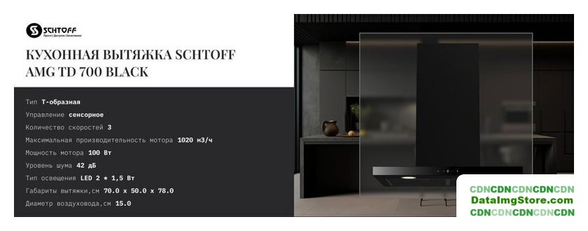 конструкция скрытая, монтаж для встраивания, ширина 71.4 см, управление электронное/кнопочное, производительность вытяжки 580 м³/ч, производительность мотора 1050 м³/ч, цвет черный