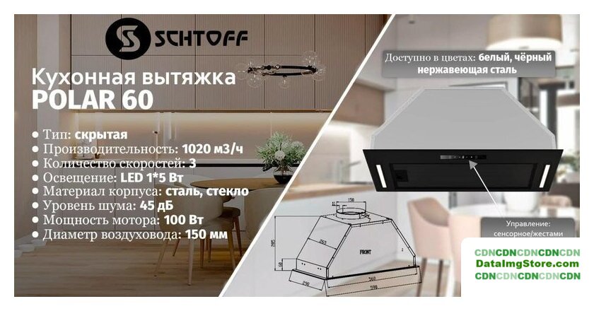 конструкция наклонная, монтаж настенный, ширина 49.5 см, управление сенсорное, производительность мотора 750 м³/ч, цвет белый