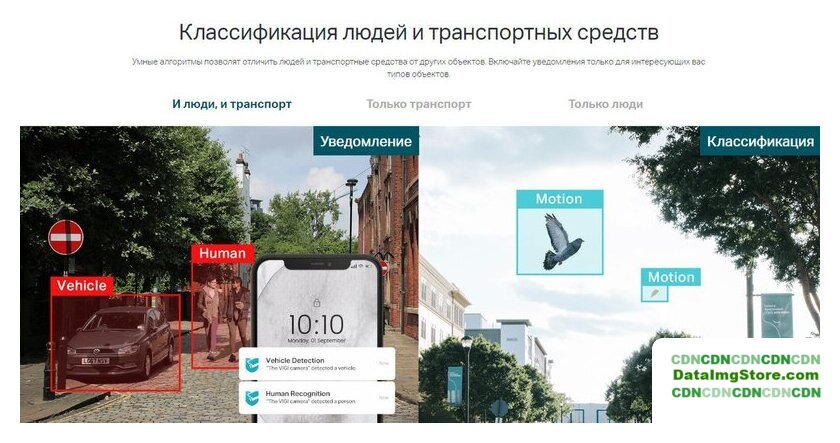 | Внутрикамерная видеоаналитика | обнаружение движения, пересечение линии, детекция лиц, детекция оставленных предметов, классификация транспортных средств |