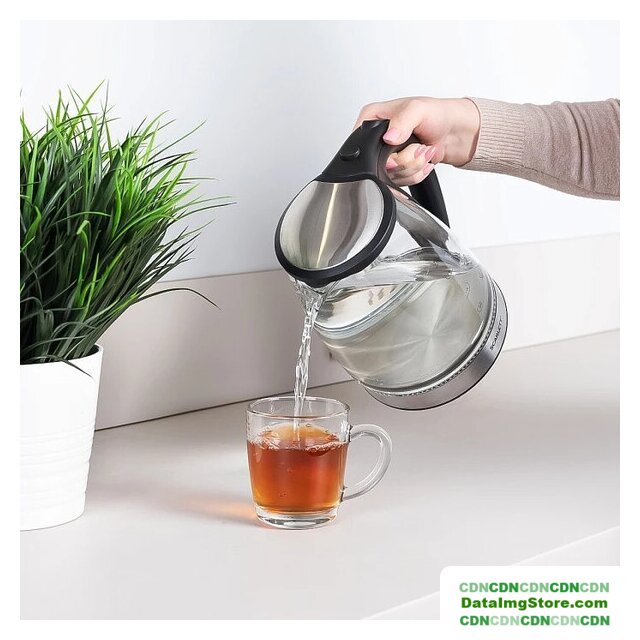 2200 Вт, объем 1.7 л, терморегулятор, подсветка, цвет нержавеющая сталь/прозрачный/черный