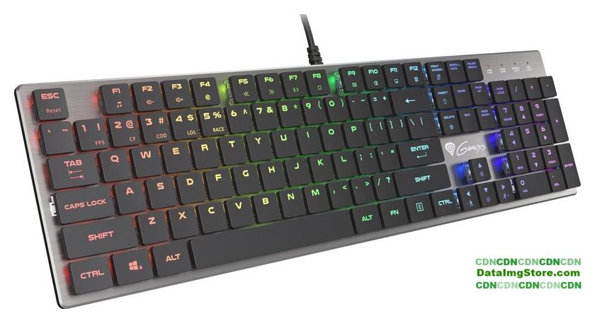 игровая для ПК, механическая, ход тактильный, металлическая верхняя панель, интерфейс подключения - USB, подсветка, цвет черный