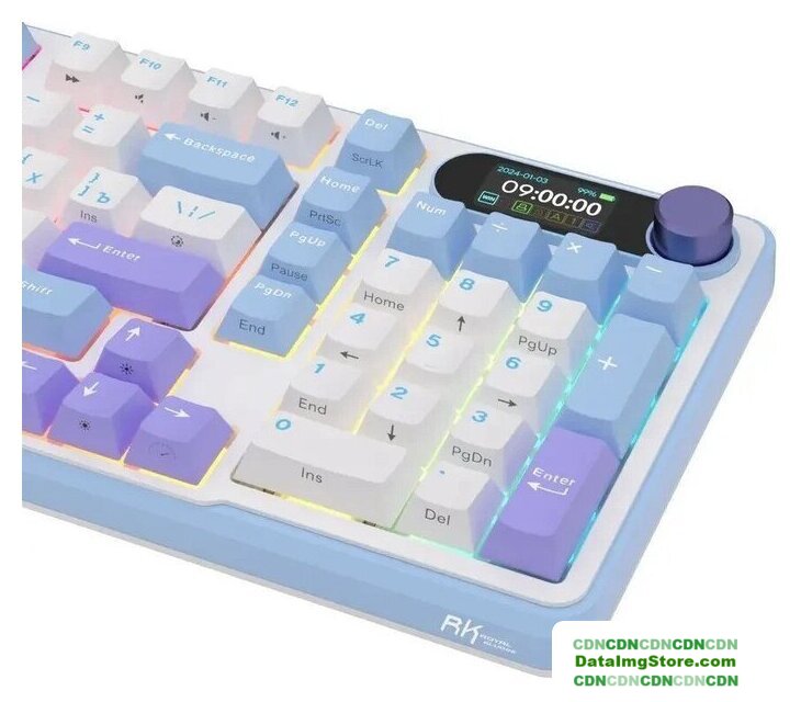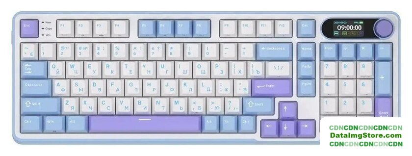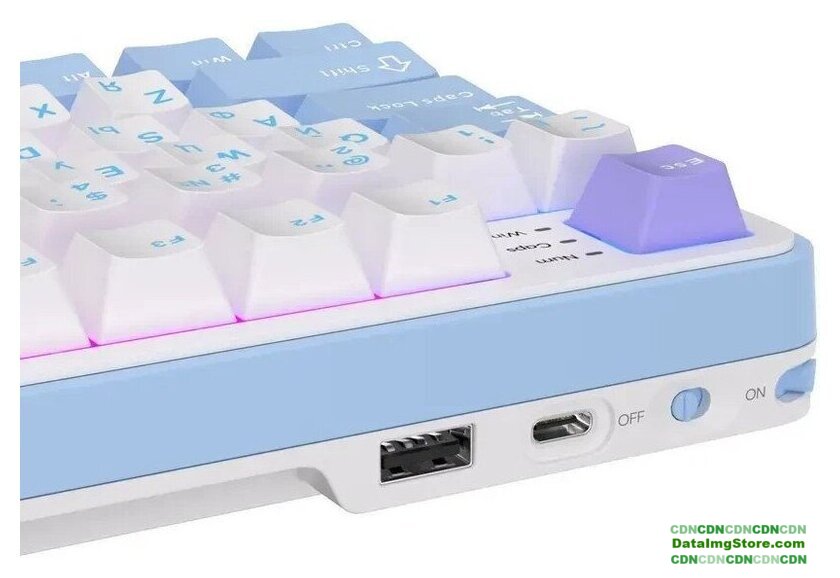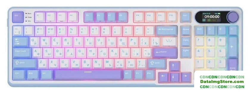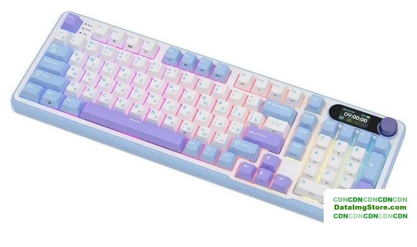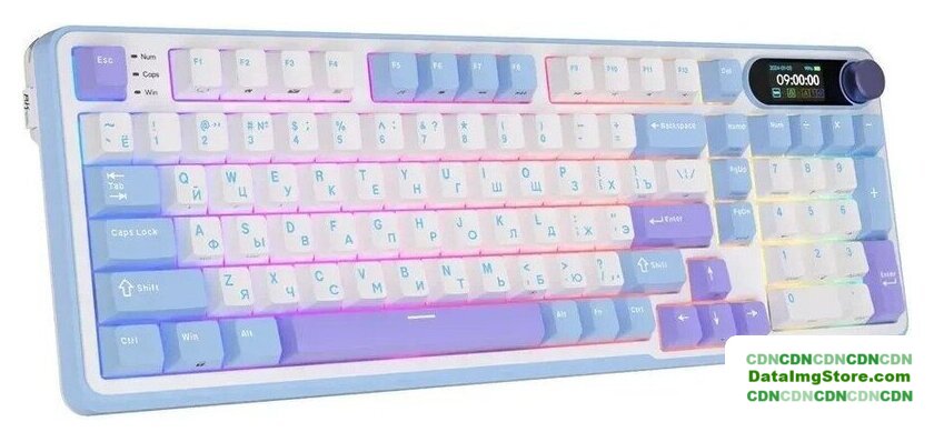 игровая для ПК/для компьютеров Apple/для iPad/для устройств Android, механическая, RK Beige, ход тактильный, пластик, интерфейс подключения - USB-A/радио/Bluetooth, подсветка, кириллица: да, цвет белый/синий