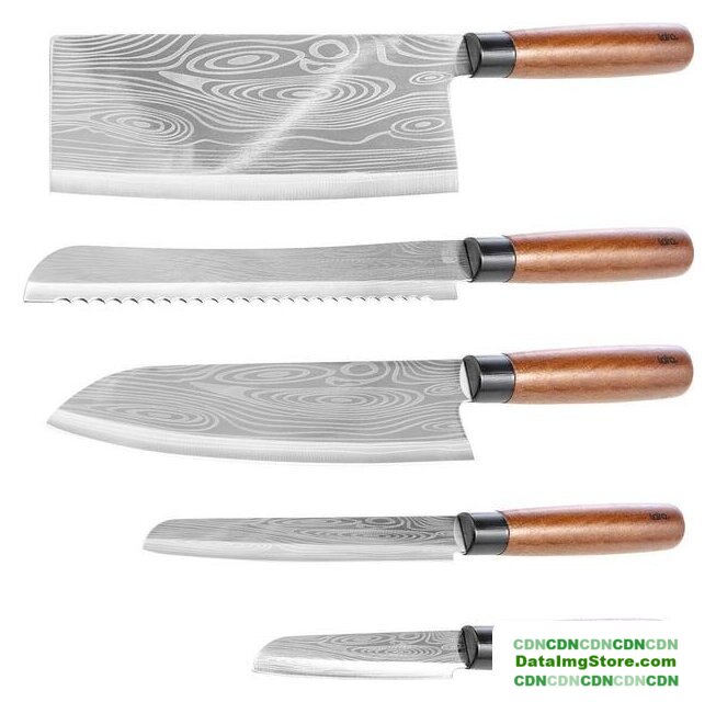 набор ножей (5 шт), универсальный/поварской/для очистки овощей/для нарезки/разделочный, материал: нержавеющая сталь/дерево, лезвие 8.9-20.3 см, в комплекте кухонные ножницы, подставка