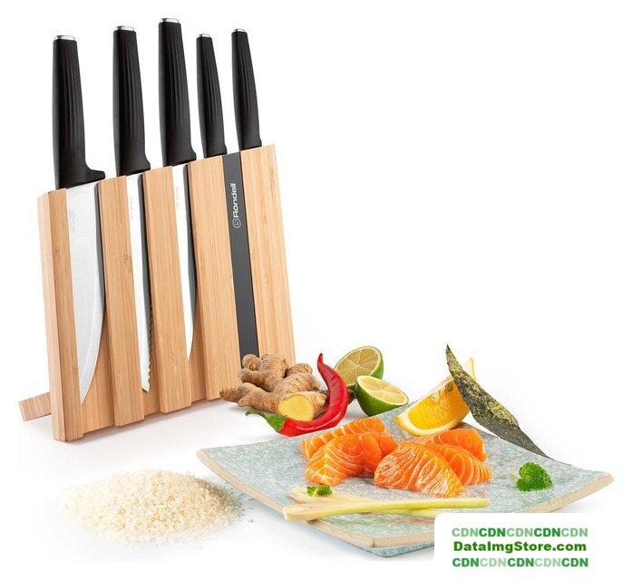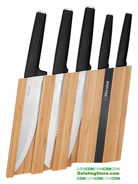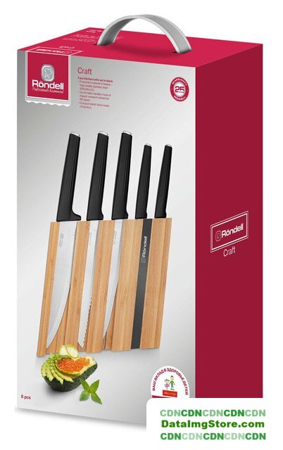 | Комплектация | Набор из 5 ножей в оригинальном блоке: поварской нож 20см, разделочный нож 20 см, нож для хлеба 20 см, универсальный нож 12,7см, нож для чистки овощей 9см. Вертикальная подставка сделана из бамбукового дерева. |