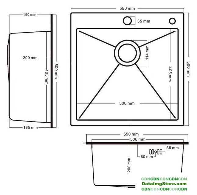врезная на столешницу, нержавеющая сталь, фактура: матовая, размеры: 55x50 см, глубина чаши: 20 см