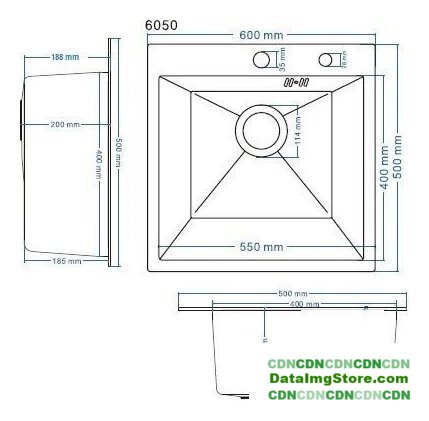 врезная на столешницу, нержавеющая сталь, фактура: матовая, размеры: 55x50 см, глубина чаши: 20 см