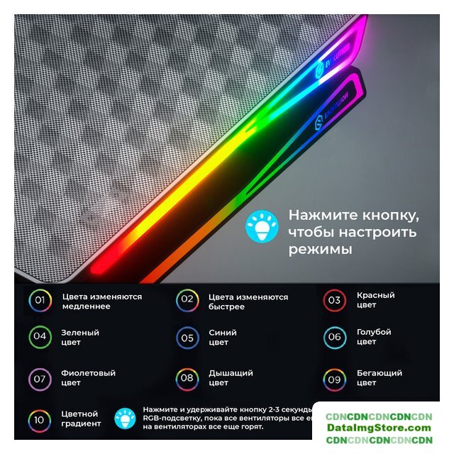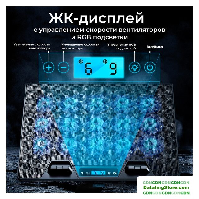 | Особенности | встроенный дисплей6 уровней скорости вентилятороввоздушный поток 110 CFM10 режимов контурной RGB-подсветкипротивоскользящие накладкиплетеный кабель |