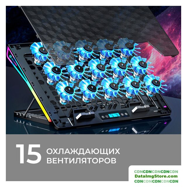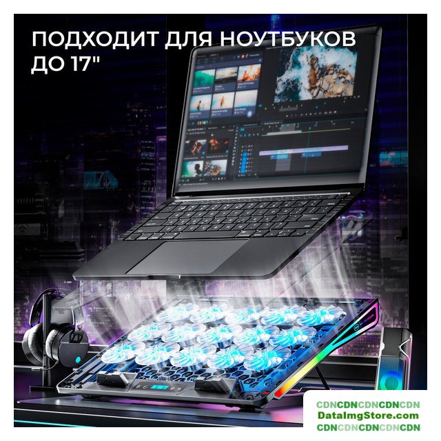 для ноутбука до 17.3", активное охлаждение, шум 25 дБ, регулируемый наклон, подсветка, 1xUSB