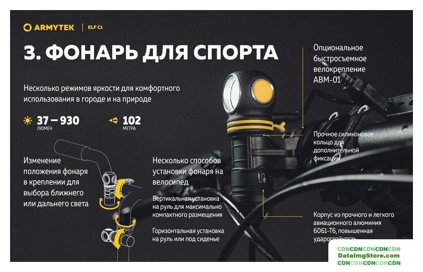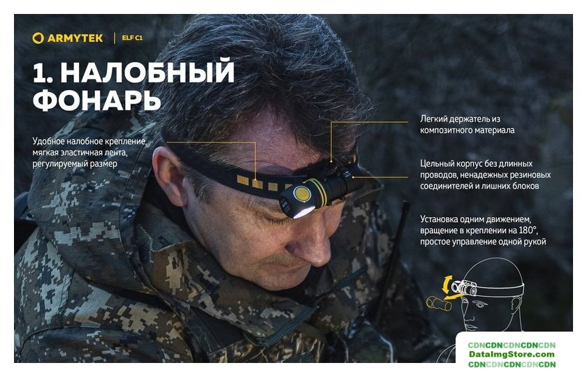 ручной/налобный, светодиод, 1000 лм в максимальном режиме, 103 м, максимальное время работы: 1440 ч, 1x18350