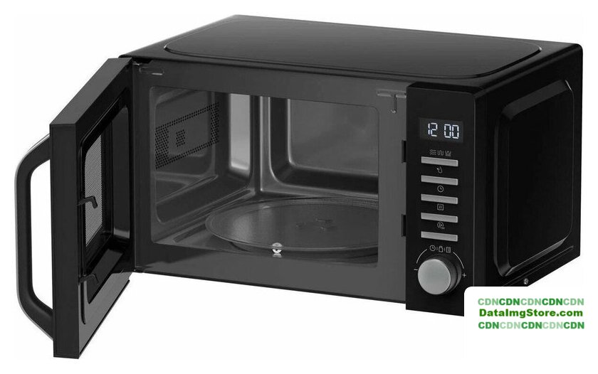 отдельностоящая, микроволны (соло), объем 23 л, выходная мощность микроволн 800 Вт, управление электронное, автоприготовление, авторазмораживание, цвет нержавеющая сталь/черный