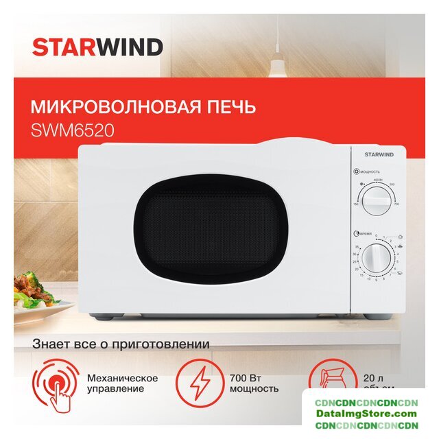отдельностоящая, микроволны (соло), объем 20 л, выходная мощность микроволн 700 Вт, управление механическое, цвет белый