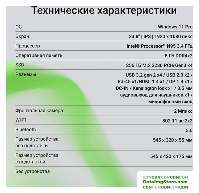 23.8" 1920 x 1080 IPS, матовый, несенсорный, Intel Pentium Silver N6000 3300 МГц, 8 ГБ, SSD 256 ГБ, видеокарта встроенная, Windows 11 Pro, цвет черный
