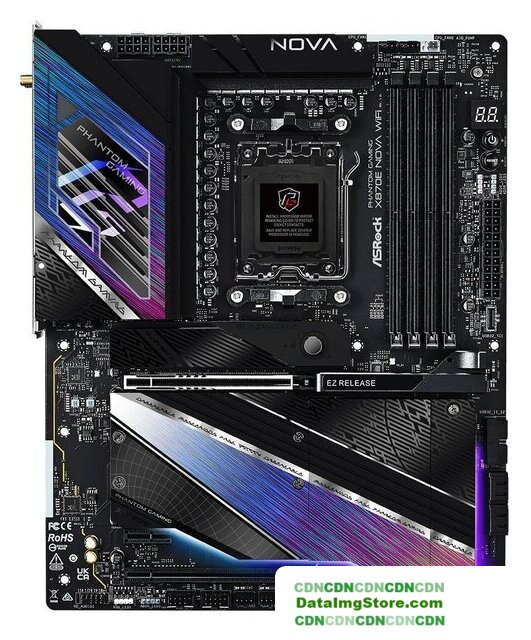 ATX, чипсет AMD X870E, память 4xDDR5/DDR5 CUDIMM до 8400 МГц, слоты: 3xPCIe x16 5.0, 4xM.2, 802.11be (Wi-Fi 7)+Bluetooth 5.4, 14+2+1 фаз питания