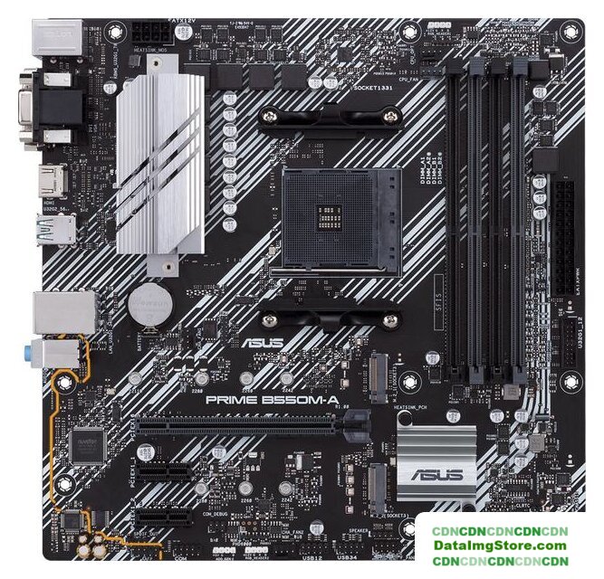 mATX, сокет AMD AM4, чипсет AMD B550, память 4xDDR4, слоты: 2xPCIe x16, 1xPCIe x1, 2xM.2