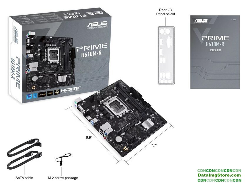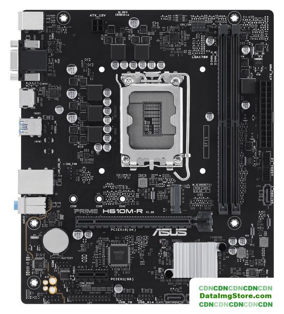 mATX, сокет Intel LGA1700, чипсет Intel H610, память 2xDDR5 до 5600 МГц, слоты: 1xPCIe x16, 1xPCIe x1, 1xM.2