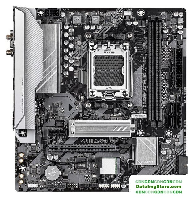 mATX, сокет AMD AM5, чипсет AMD B650, память 2xDDR5 до 5200 МГц, слоты: 1xPCIe x16 4.0 и 3.0, 1xPCIe x4, 1xPCIe x1, 1xM.2, 802.11ac (Wi-Fi 5)+Bluetooth 4.2, 6+2+1 фаз питания