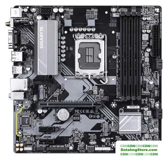 mATX, чипсет Intel B760, память 4xDDR5 до 5600 МГц, слоты: 2xPCIe x16 5.0, 2xM.2, 802.11ax (Wi-Fi 6E)+Bluetooth 5.3, 8+1+1 фаз питания