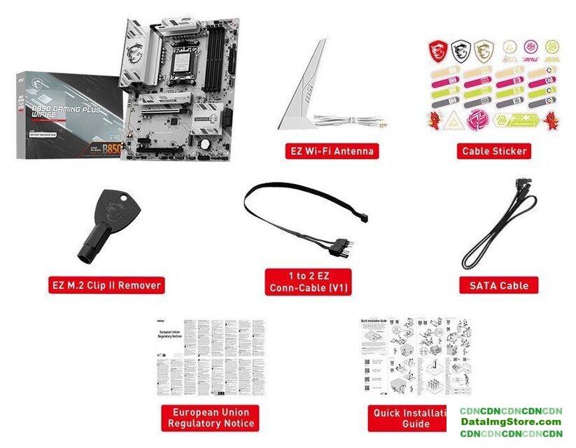 | Комплектация | - кабель SATA - Wi-Fi антенна - 1-2 EZ кабель - набор стикеров- EZ M.2 Clip II экстрактор- документация |