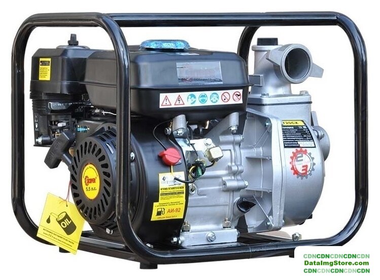 для слабозагрязненной воды, бензиновый двигатель, мощность 5.14 кВт, производительность 1000 л/мин, высота подъема 30 м, бак 3.6 л, патрубки 80/80 мм