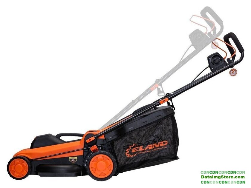 роторная газонокосилка, электрический двигатель 1600 Вт (2.14 л.с.), ширина скашивания: 38 см, мягкий травосборник 45 л, корпус: пластик