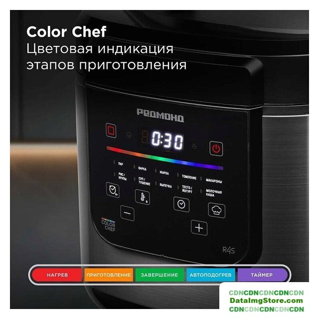| Перечень режимов работы | Томление, Тесто/Йогурт, Молочная каша, Пар, Экспресс, Рис/Крупы, Макароны, Выпечка, Суп/Тушение, Варка, Жарка, Мультиповар |