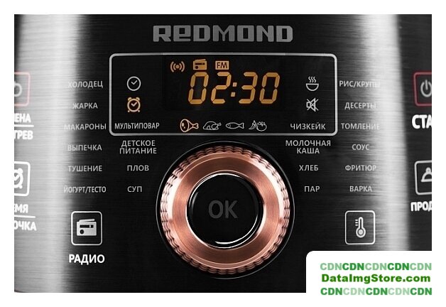 | Режимы приготовления | варка, выпечка, десерт, детское питание, жарка, йогурт, крупа, макароны, молочная каша, пароварка, плов, рис, суп, тесто, томление, тушение, фритюр, хлеб, холодец (чизкейк, соус, экспресс) |