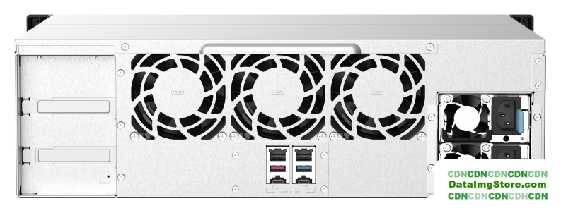 12 x 3.5"/2.5" SATA 3.0, RAID 1/5/6/10/JBOD, hot swap, охлаждение воздушное, LAN 4x1 Гбит/с + 2x10 Гбит/с, 2x USB-A 3.2 Gen1